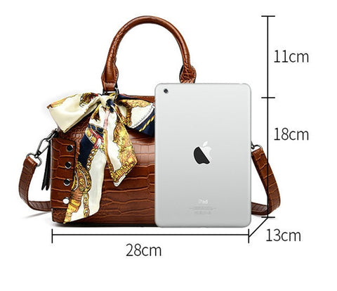 Elegant Crocodile Pattern Boston Bag Handbag With Silk Scarf For Party and Work