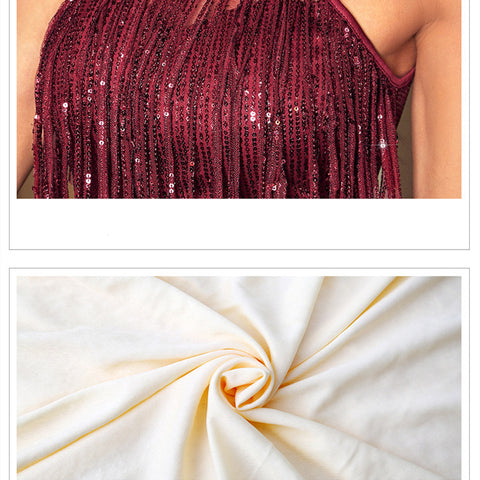 Sexy Sleeveless Sequin Tassel Evening Dress For Party