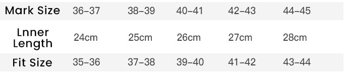 • The size of the shoe marking is one yard larger than the actual size, such as: shoe marking 36-37, suitable for feet with size 35-36