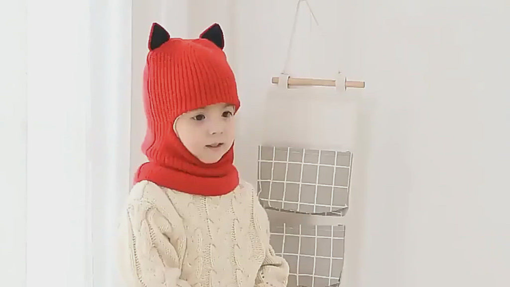 Cute Protective Face Neck Knit Warm Plush Winter Hat For Childen