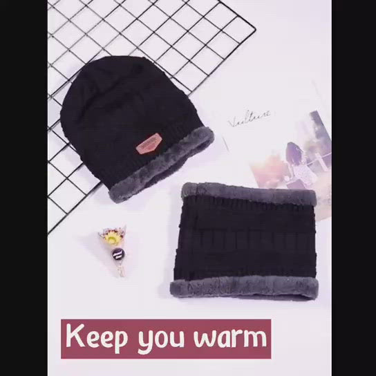 Men Winter Knitted Hat Two-Piece Suit With Scarf
